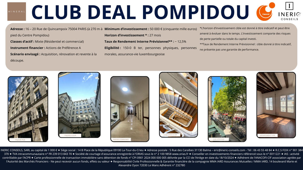 - Focus sur l’investissement et Private Equity et Club Deal immobilier